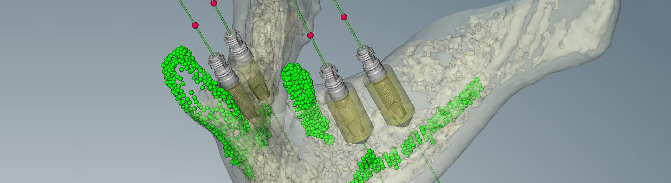 Mit den Daten aus der 3D-Implantationsdiagnostik wird die genaue Position des Implantates digital geplant. Bereits zu diesem Zeitpunkt kann ein Patient sehen, wie die ideale Implantatposition realisiert werden soll. Implantate können so mit größter Präzision gesetzt werdenn.